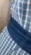 Dark blue denim waist belt with lace up design at the center front. Velcro closure comes in sizes xs-3X
