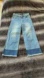 Distressed dip dye hem jeans with wide leg. Wide leg fringed dyed hem two tone jeans.