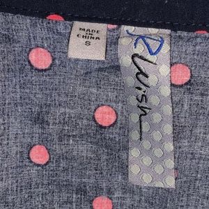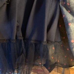 Blue dress with red polka dots. Girls size 8, by RWish with a ruffled tulle underneath for a great touch of flare!