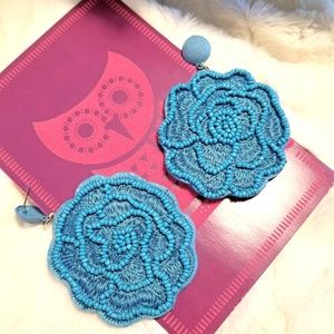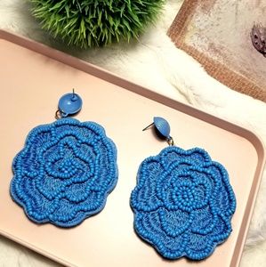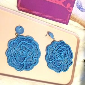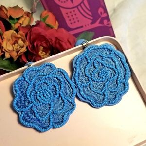Flower shaped Beaded for that bohemian look Blue drop earrings