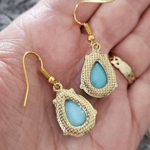 Blue drop Dangle earrings. Goldtone.New never worn. See pictures.