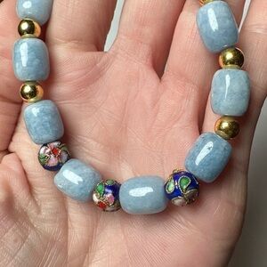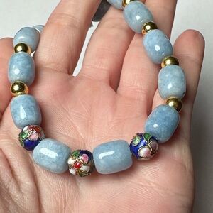 Blue dyed quartz bracelet with flower beads handmade stretchy