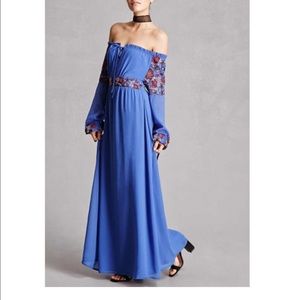 Gorgeous blue off the shoulder maxi. Bought from forever21 but it's a boutique brand that they now carry. never had a chance to wear it. Now it doesn't fit. Super cute and love the details!