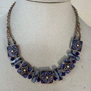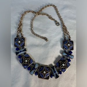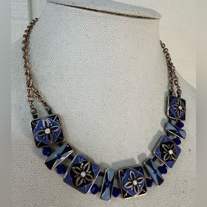 Blue enameled rhinestone statement necklace