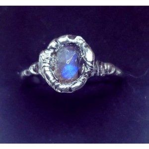 Fantasy, cosplay, vampire, gothic, renaissance, rustic, steam punk, handmade jewelry, silver ring, raw crystal ring, boho jewelry, mystical art, blue, labradorite, blue fire, anime