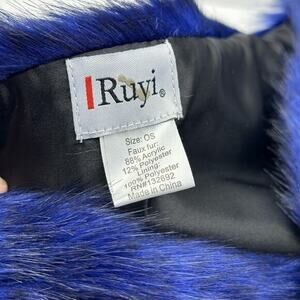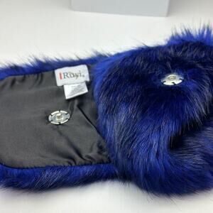 Blue faux fur neck scarp wrap with broach snap closure