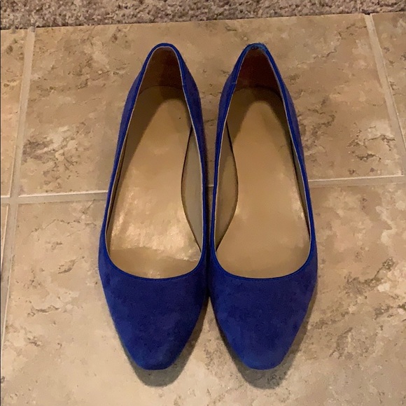 Blue Talbots flats. Fake suede. Moderately used but still in good condition. Has the slightest of heal.