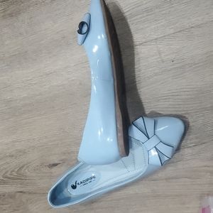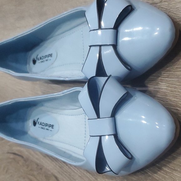 Kadipipe company, sleek lite blue, old-fashioned flats. Name your price. Well made with attention to detail. In excellent condition.