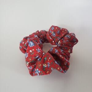 This listing is for the red floral pattern large scrunchie with thin elastic band. This was made from rescued quilting cotton saved at the goodwill bins.