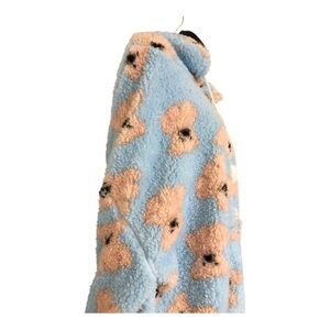 Blue fluffy sherpa like teddy bear print oversized hoodie poncho blanket size OS new