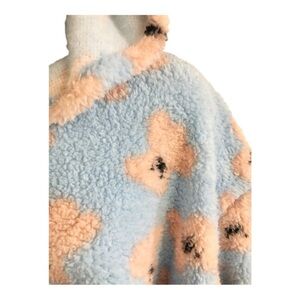 Blue fluffy sherpa like teddy bear print oversized hoodie poncho blanket size OS