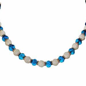 Blue glass bead and white bead necklace and earring set. It is designed with blue rondelle shape glass beads and white acrylic beads with tiny beads all around them. Each bead is separated by small silver spacer beads. It's a beautiful mix of light aqua blue and white that works nicely with any outfit. New and never worn.