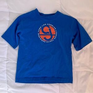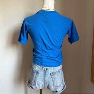 cobalt blue, graphic print, cropped fit, streetwear, bold accents, relaxed style, casual tee, vibrant colors, sporty vibe, urban fashion