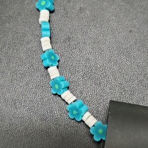Blue, green and white flower necklace