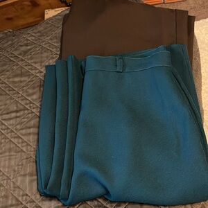 Amazing dark green trousers. These are about 26” around the top. Nice high waist and 31-32” inseam. No pockets. Skinny belt loops. So great for the office. No brand tag.