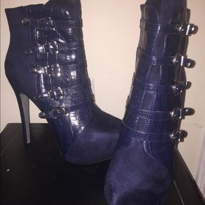 Never worn blue leather and suede heels.