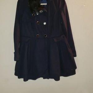 Very cute stylish navy blue jacket with fur accents NWOT.
