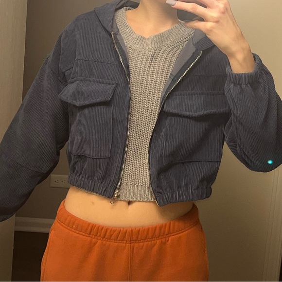 Zip up corduroy look hooded jacket from shein oversized slightly