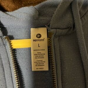 Blue ish gray cropped jacket, very stretchy and soft, stringed hood, pockets, fits up to xl, good condition