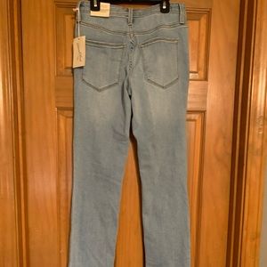 New blue jeans has holes at the knees none at the back. Still has the tags.