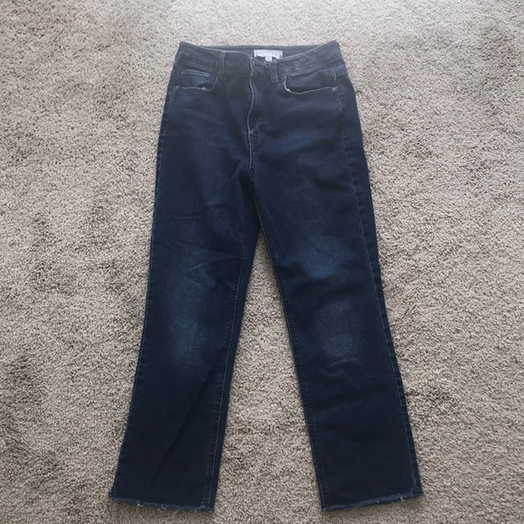 Ankle cropped fringe high rise straight blue jeans purchased from Francesca’s