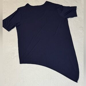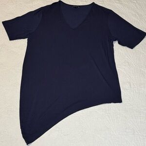 Blue knit shirt, uneven hem. Universal Standard size Sm