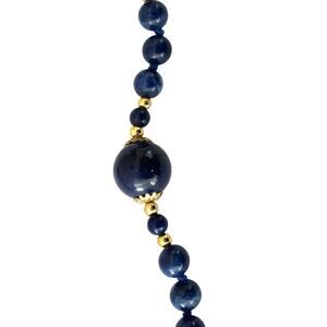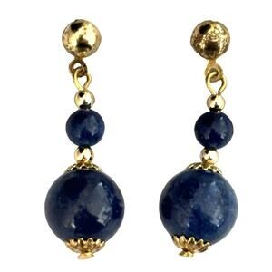 Blue lapis gemstone with gold tone beaded 18 inch necklace matching earrings
