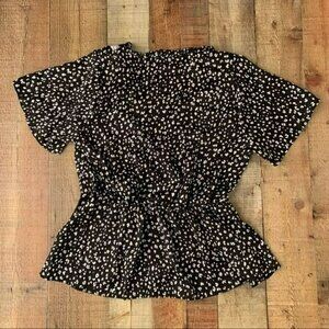 Blue leopard black and white animal print baby doll low neck short sleeve blouse