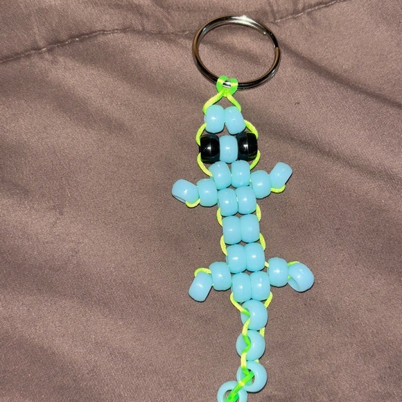 This mini blue lizard goes on your backpack to be your friend!! he is handmade out of pony beads
