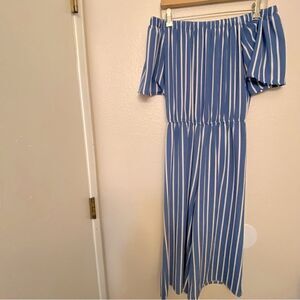 Blue minimal Stripe Culotte Jumpsuit off shoulder romper blue coastal preppy S