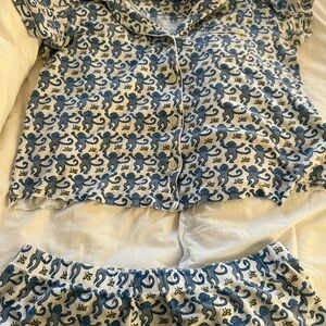Blue monkey, roller rabbit, pajamas, size XL, some thread pulls on the bottom of the shirt