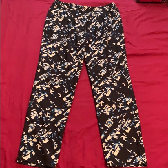 Blue pattern flowy pants, high- mid waisted with zipper in the back