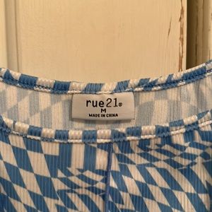 Blue and white patterned shirt from rue 21. Size medium and is a stretchy material.