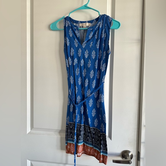 Dress from Loft. The material is pretty thin and no lining. There is a tie that goes around waist but it is not sewn to dress so can be removed if you want.