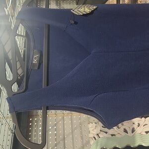 This blue peplum V-neck top is designed to flatter with its fitted bodice and flared hem. The size medium offers a comfortable fit, while the V-neck adds a chic touch. Perfect for dressing up with slacks or pairing with jeans for a stylish yet polished look.