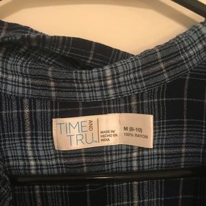 Blue plaid button down tee