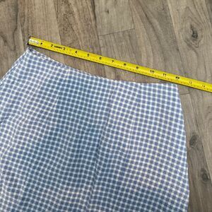 Blue plaid gingham mini skirt with slit in excellent condition.