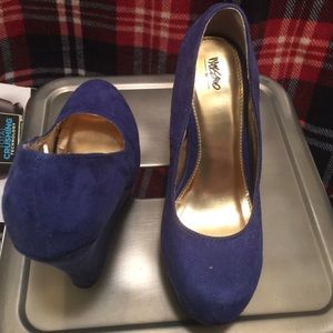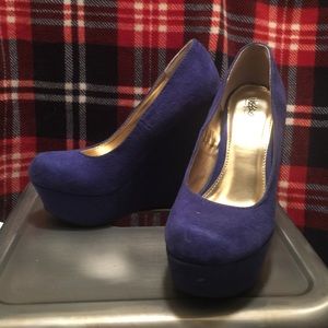 Royal blue suede platform heels. Worn only once and (only through an airport)
