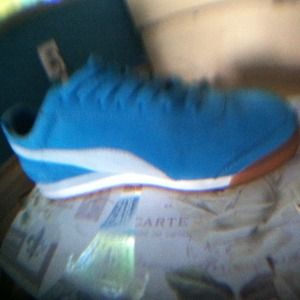 Bright sea blue puma Roma-almost new) barely worn-reason for selling. They're still in really good condition.