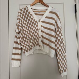 Blue rain by Francesca’s Checkered striped Cream and Tan Women's Sweater size xs
