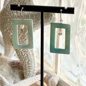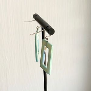 Blue rectangular earrings inspired by the sea.