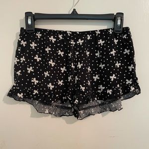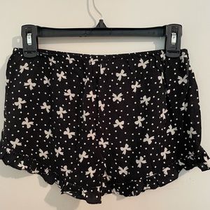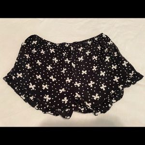 Dark Blue Rib Ruffled Shorts with White flower pattern Good Condition, Run short