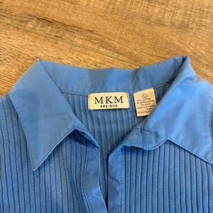 Size large. Polo style. It gives “tennis girl” or “golf girl”. Slight discoloration in the color.