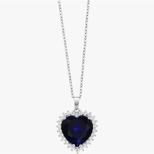 Gorgeous petite version of the famous “Heart of the Ocean” necklace from the movie Titanic, never worn but tags off, in 925 sterling silver with sapphire central stone