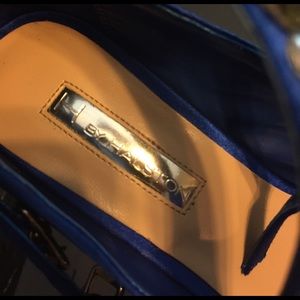 Worn once for a photo shoot! Size 5 blue satin H by Halson high heels.