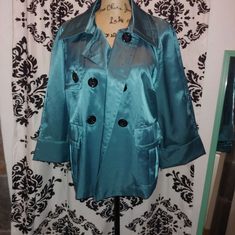 Emma James blue satin lightweight jacket absolutely stunning size 14