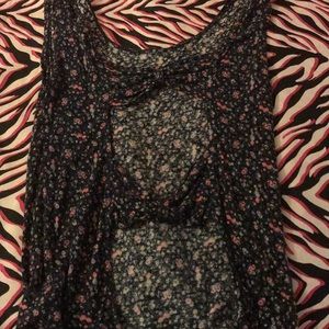 Blue floral shirt with cut out back.