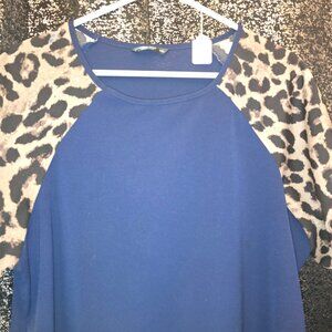 This top is adorable. It is a blue top with leopard sleeves. Size 1XL , (Ptp=23 ) Made by Shein