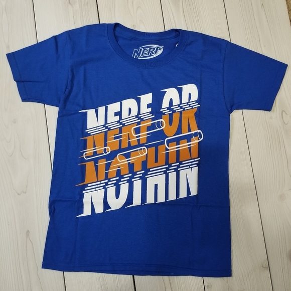 Blue short sleeve Nerf or Nothin shirt Size S (8) NWT