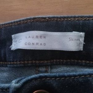 Size 14, high rise, dark wash skinny jeans. In good condition. Runs small.